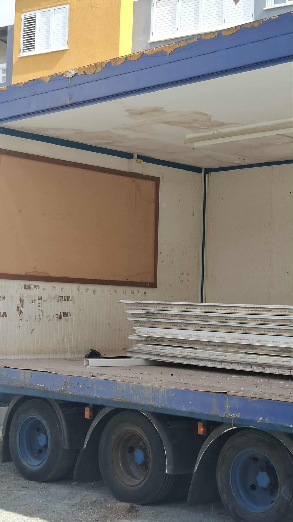 Σήμερα έφτασαν στο Λύκειο Κύκκου τρεις προκατασκευασμένες αίθουσες για να στεγάσουν μαθητές. Η εικόνα τους όμως προκαλεί θλίψη και οργή. Οι αίθουσες βρίσκονται σε άθλια κατάσταση, με εμφανή σημάδια φθοράς, ακαταλληλότητας και εγκατάλειψης.