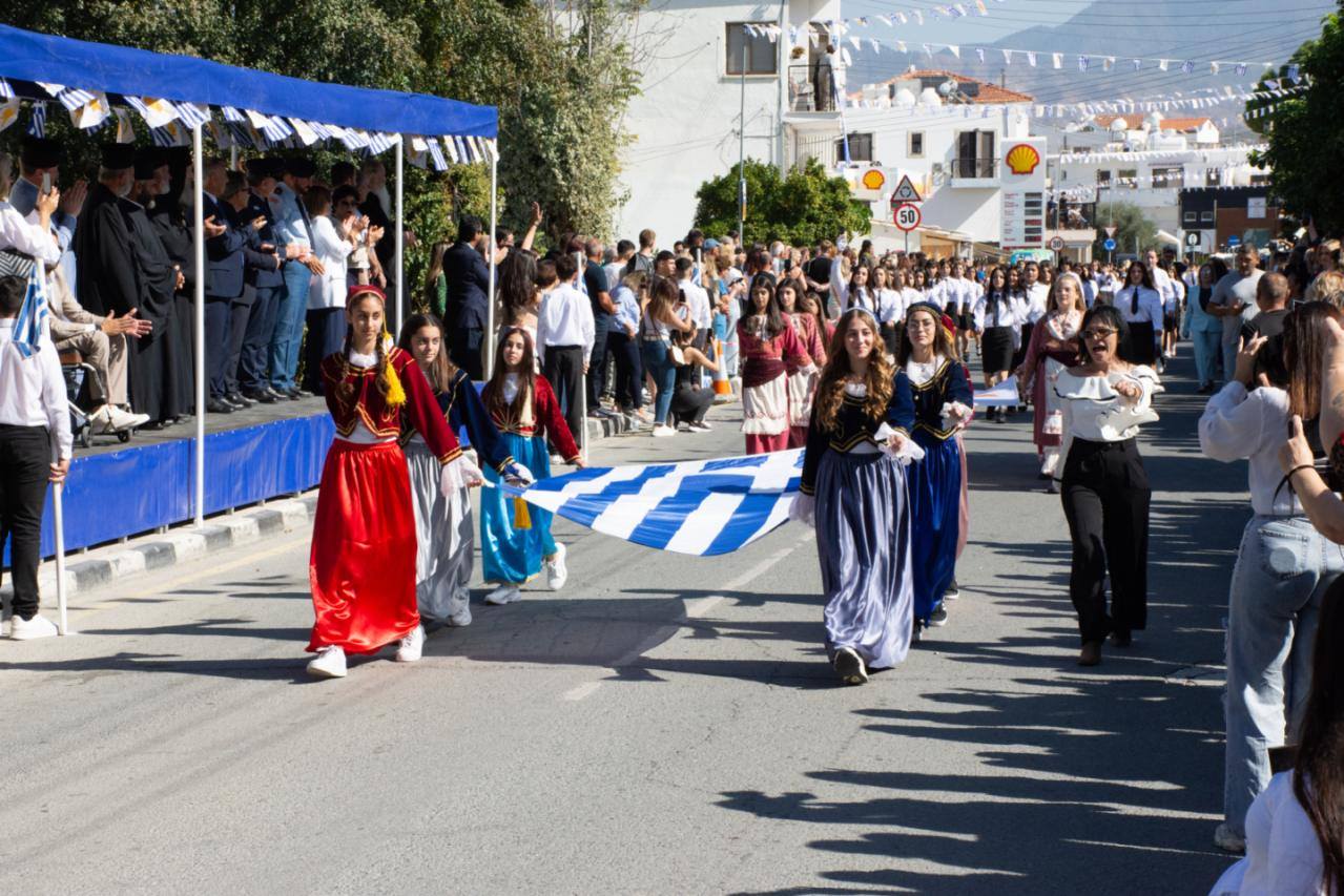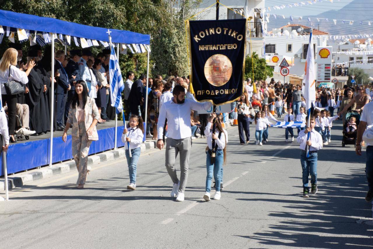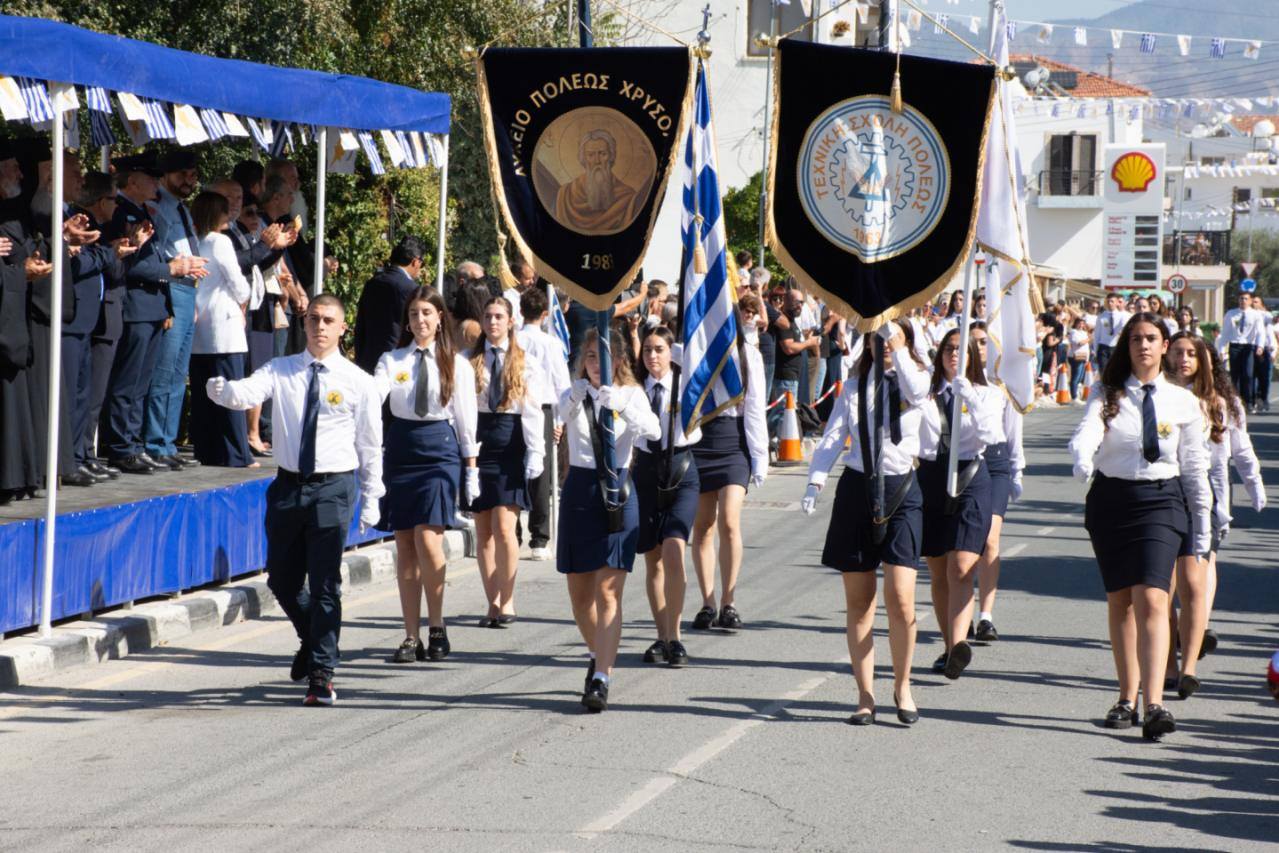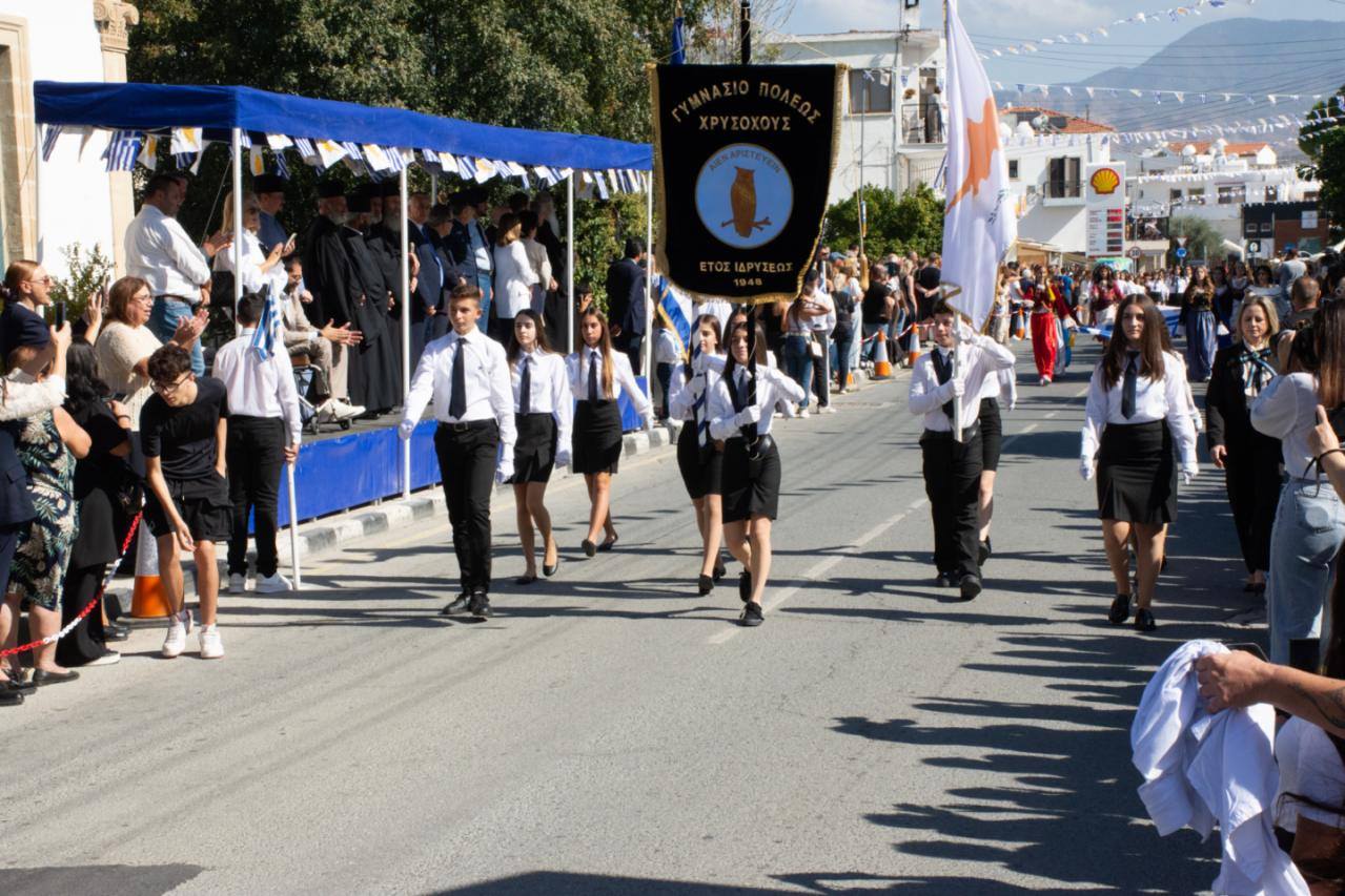 Ακολούθησε παρέλαση των μαθητών των εκπαιδευτηρίων Πόλης Χρυσοχούς, συνοδεία της μπάντας του Λυκείου και ΤΕΣΕΚ Πόλης Χρυσοχούς, υπό τη διεύθυνση του καθηγητή μουσικής κ. Άντρη Τσόγκη. Εκφωνήτριες της παρέλασης ήταν οι εκπαιδευτικοί Χρίστια Κοντού και Ειρήνη Τσιαούκκα.