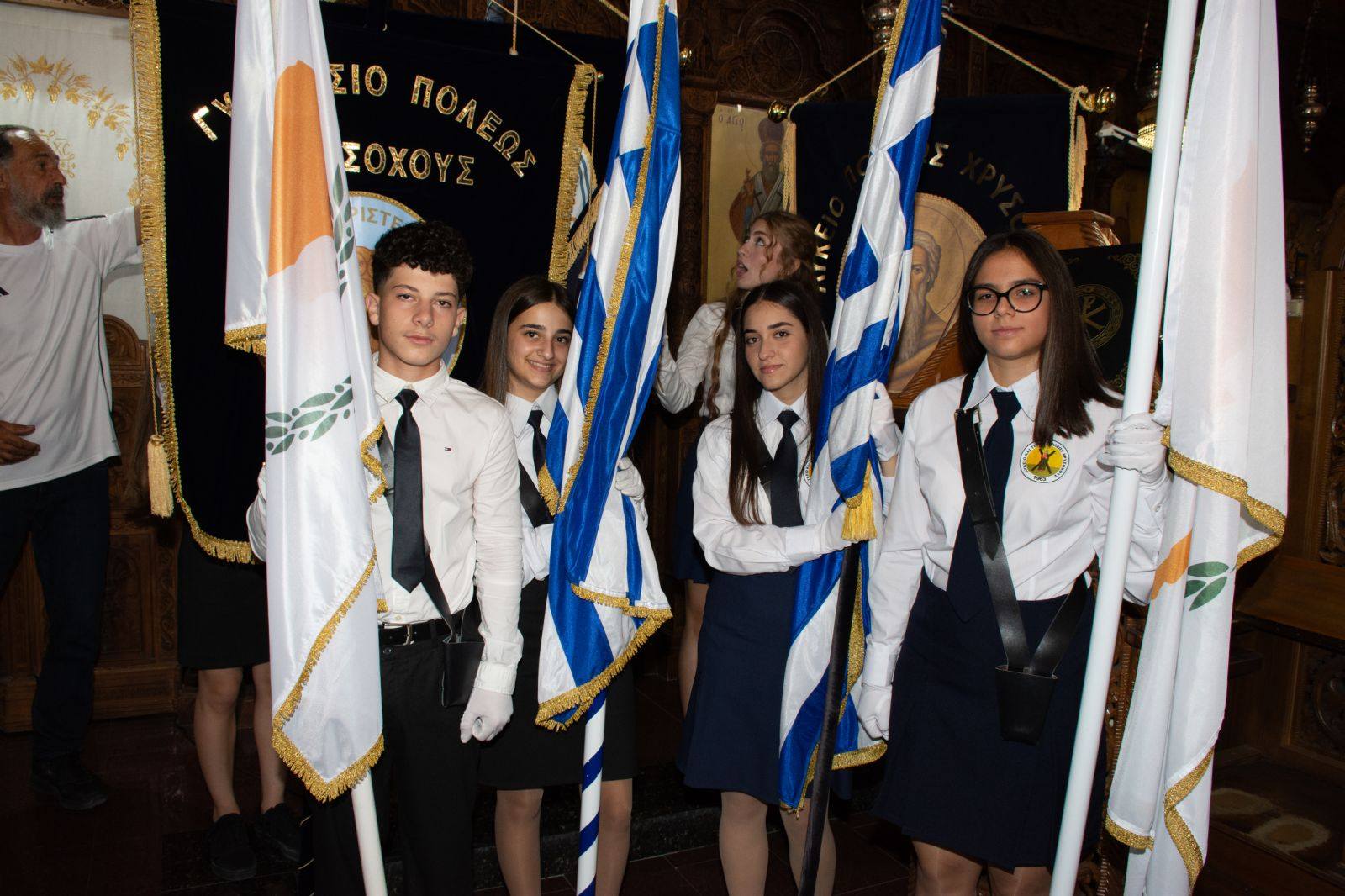 Ακολούθησε στις 7:00 π.μ. η έπαρση της Σημαίας στο Πολιτιστικό Κέντρο Δήμου Πόλης Χρυσοχούς, στην οποία παρέστησαν εκπρόσωποι της τοπικής κοινωνίας και μαθητές των σχολείων.