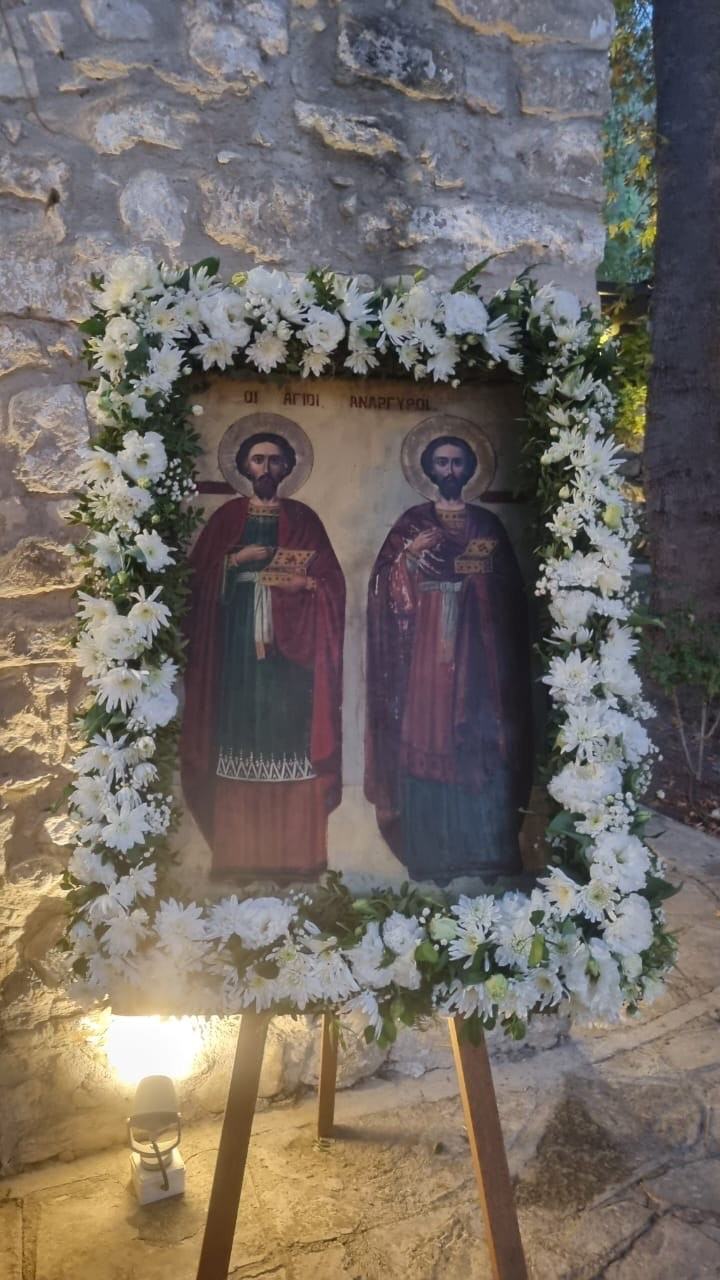 Χτισμένο το 1649 από τους αδελφούς Κοσμά και Δαμιανό, το μοναστήρι υπήρξε από τα πρώτα στο νησί και ιδρύθηκε με σκοπό την περίθαλψη των ασθενών και των ετοιμοθάνατων χωρίς αμοιβή, ανέφερε η κ. Χρυσάνθου. Σήμερα, ο χώρος του έχει ανακαινιστεί και λειτουργεί ως spa hotel, διατηρώντας ωστόσο την ιστορική του αύρα και τη θρησκευτική του αξία.