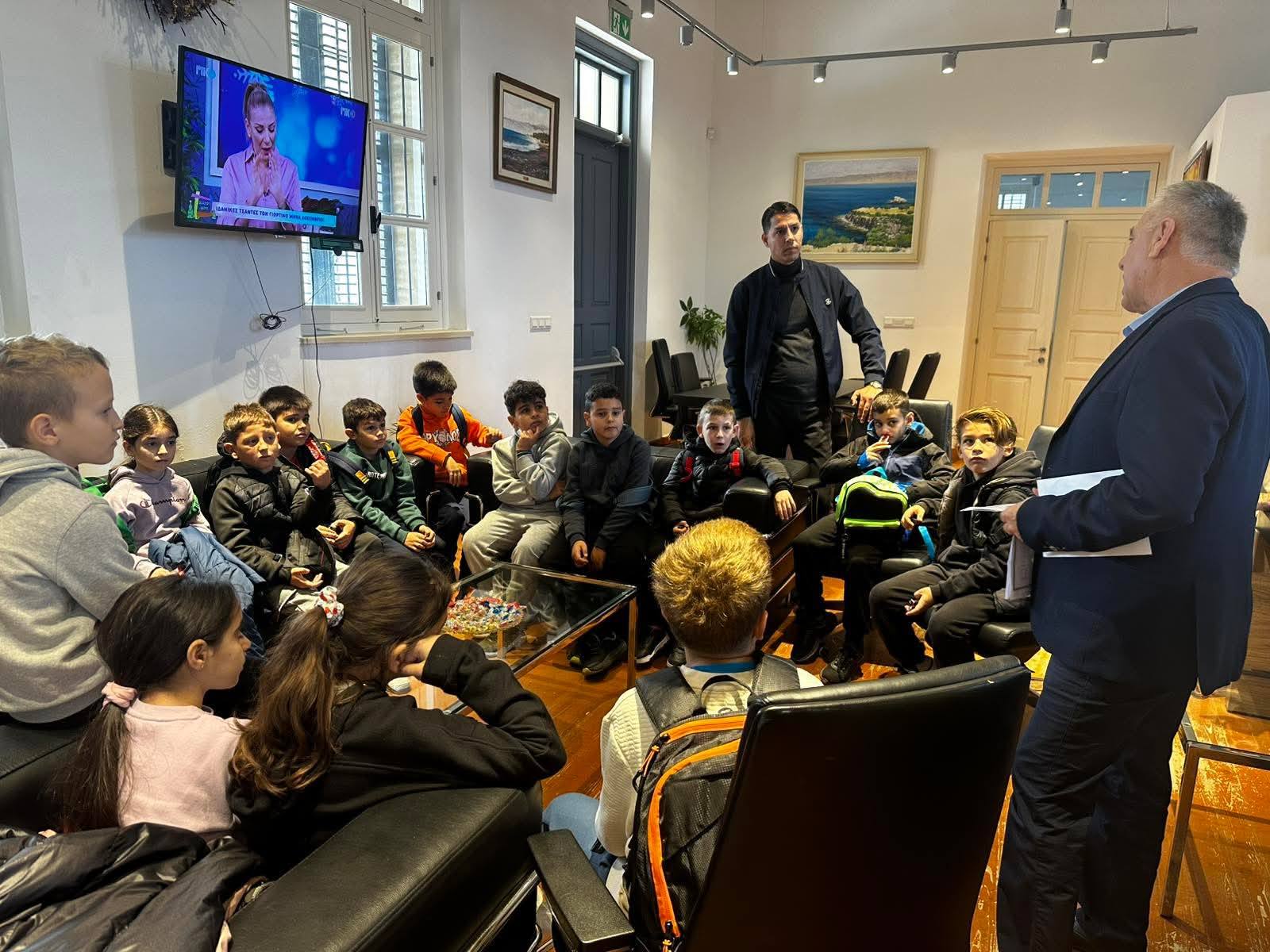 Ο Δήμος Πόλης Χρυσοχούς υποδέχτηκε σήμερα 9 Δεκεμβρίου 2025, τους μαθητές και εκπαιδευτικούς της Γ’ τάξης του Δημοτικού Σχολείου Αργάκας, οι οποίοι παρέδωσαν επιστολή στο Δήμαρχο Πόλης Χρυσοχούς, κ. Γιώτη Παπαχριστοφή, με αίτημα την επιδιόρθωση και την βελτίωση των υποδομών του Πάρκου στην Αργάκα, το οποίο βρίσκεται δίπλα από το σχολείο τους.