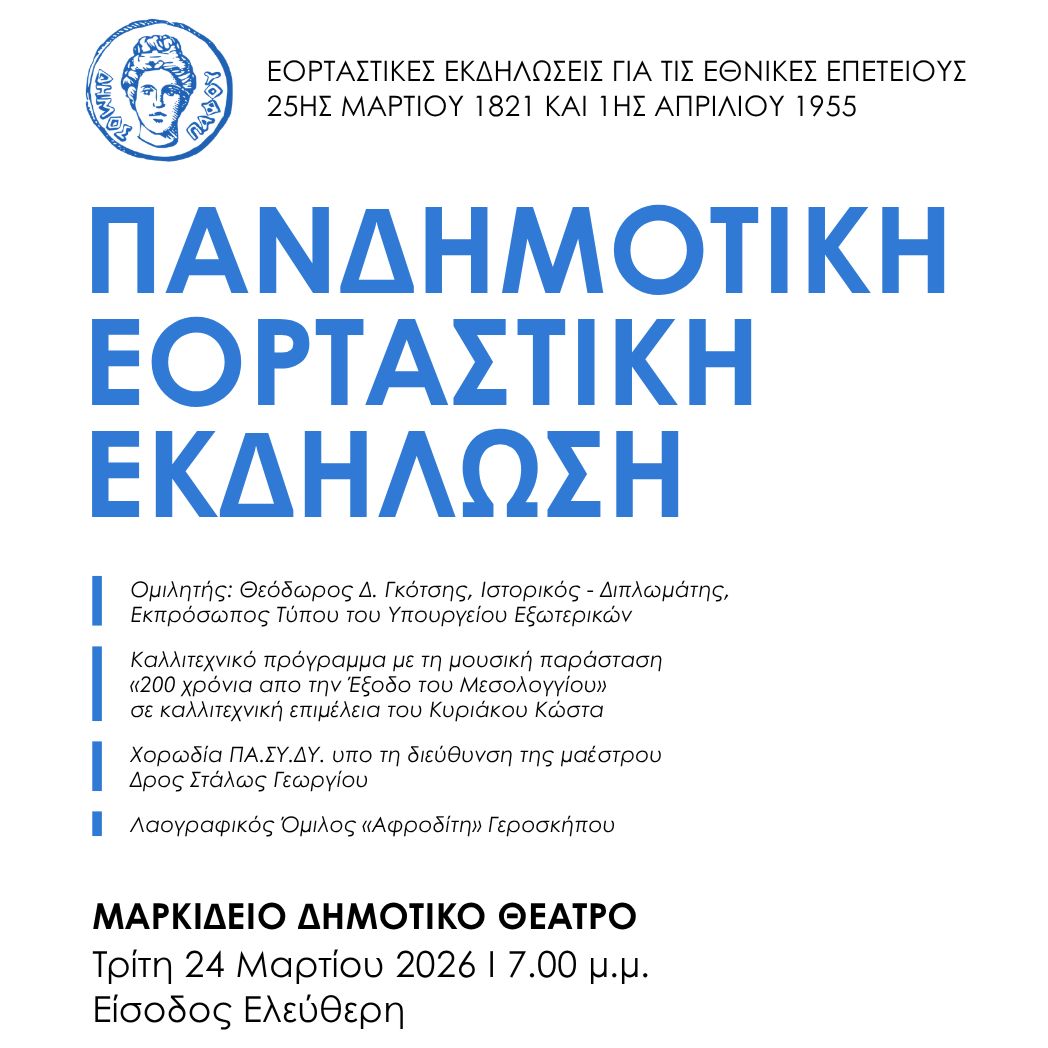 Ο Δήμος Πάφου σας προσκαλεί σε μια ξεχωριστή βραδιά μνήμης και τιμής, αφιερωμένη στους αγώνες και τις θυσίες του Ελληνισμού.